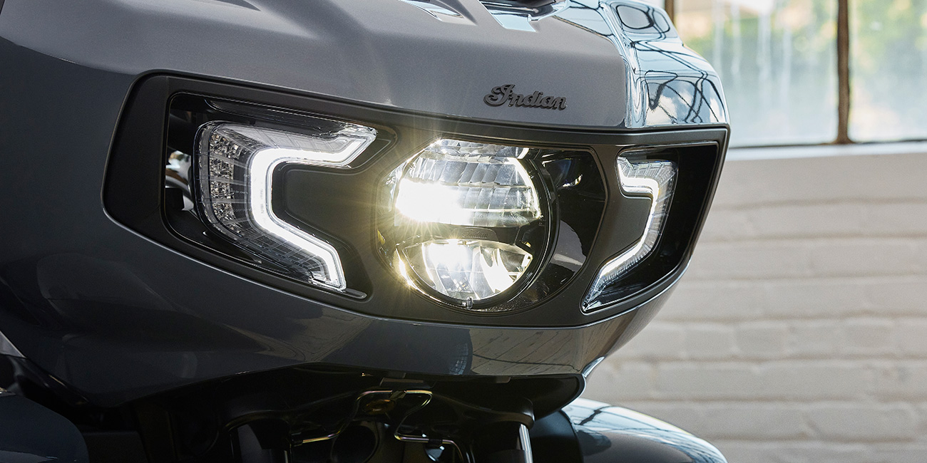 SOUS LE FEU DES PROJECTEURSOutre ses feux diurnes et sa signature lumineuse à LED unique, profitez de feux de route hyper premium intégrés à la partie basse du carénage pour une visibilité optimale. Plus d’éclairage pour plus de sécurité.
