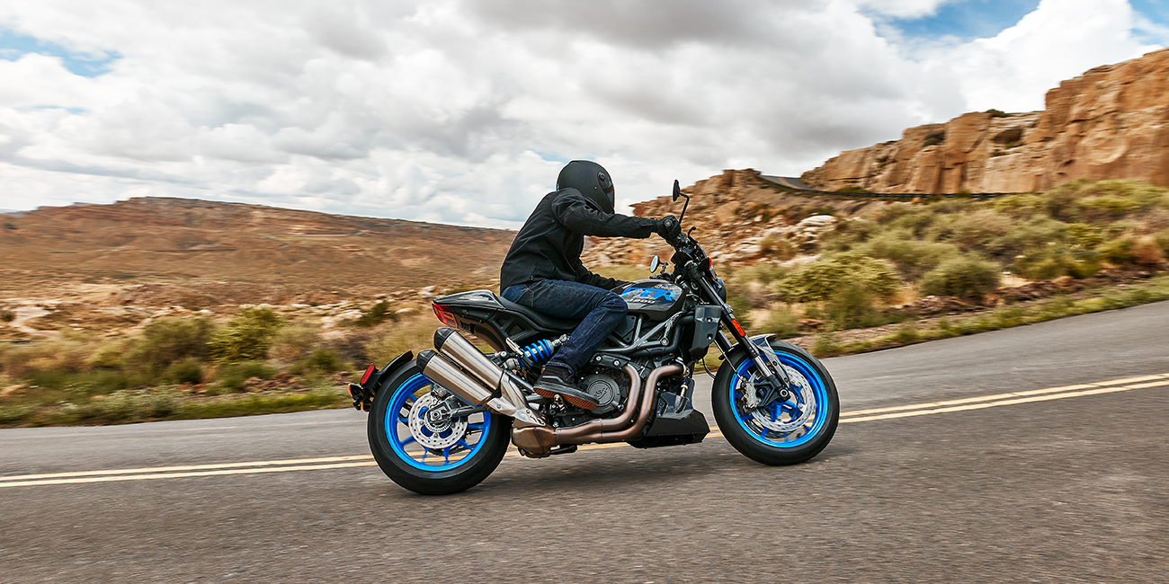 Le caractère d’un bicylindre en V américain à haut régime et à refroidissement liquide est unique en son genre – et celui de la FTR est loin de faire exception. Son couple de 120Nm promettent une courbe de couple aussi homogène que longue, digne d’un moteur réactif qui sait s’imposer lorsque son pilote le souhaite et où il le souhaite.