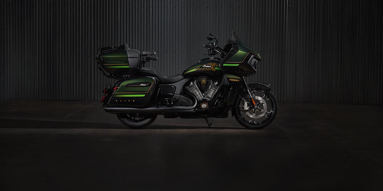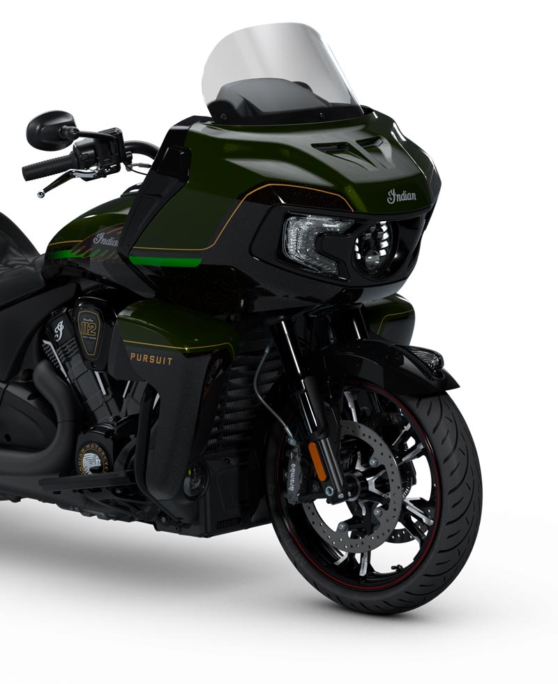 Sacoches rigides verrouillables à distance, pare-brise à réglage électrique, plus de 140 litres de rangement, allumage sans clé, aérateurs de carénage réglables, chargeur USB, système de contrôle de la pression des pneus (TPMS), plateaux repose-pieds pilote et passager, selles chauffantes à surpiqûres de couleur verte, commodos rétroéclairés avec poignées chauffantes et accoudoirs pour le passager.